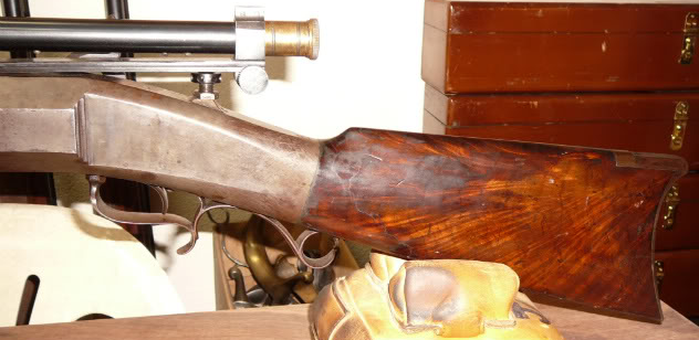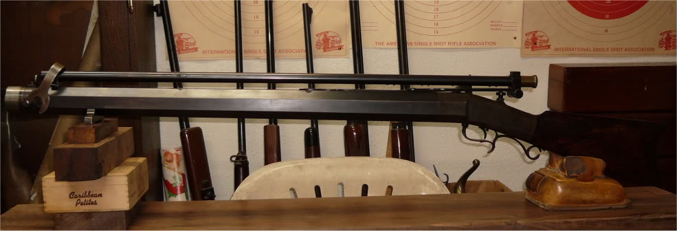 Seth’s muzzle loading bench rest target rifles were heavy creations that show a high degree of his skill as a machinist. The following rifle appeared on the internet many years ago and is a fine example of his craftsmanship.
