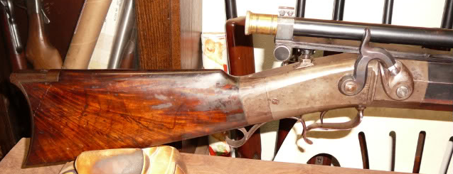 The following image shows a model 1882 Maynard rifle that was re-barreled for bench rest shooting by Seth. At one time it was owned by M. S. Risley. It was sold in a Richard A. Bourne Co. Inc. Auction on May 14, 1980 which was largely made up of the gun collection of Mr. Risley. The auction also included a bench rest used by Seth and a heavy percussion rifle made by Seth.
